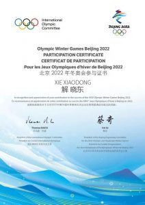水立方項目9名安保人員在水立方閉環(huán)管理期間以優(yōu)秀的工作表現(xiàn),榮獲了奧組委頒發(fā)的《北京2022年冬奧會參與證書》。