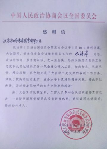 接下來,京城安保集團將深入學習宣傳貫徹落實全國兩會精神,進一步理順工作思路,明確工作目標,細化工作任務,加強安保隊伍管理,狠抓安保隊伍建設,切實提高安保隊伍業(yè)務素質(zhì)和服務水平,將工作盯到位、干到位、落實到位,以高質(zhì)量高標準完成各項工作任務,以實際行動迎接黨的二十大召開!