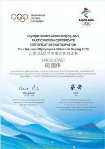 水立方項目9名安保人員在水立方閉環(huán)管理期間以優(yōu)秀的工作表現(xiàn),榮獲了奧組委頒發(fā)的《北京2022年冬奧會參與證書》。