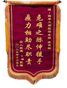 10月5日傍晚,京城安保駐國(guó)家大劇院項(xiàng)目安保班長(zhǎng)王力明在執(zhí)勤時(shí),憑借高度的責(zé)任心與專(zhuān)業(yè)的應(yīng)急處置能力,帶領(lǐng)安保隊(duì)員與現(xiàn)場(chǎng)場(chǎng)務(wù)人員、服務(wù)人員共同救助了一名在觀(guān)看音樂(lè)演出后突發(fā)心臟病的老人。為表肯定與感謝,老人家屬特向京城安保隊(duì)伍贈(zèng)送了一面印有“危難之際伸援手 鼎力相助盡職責(zé)”的錦旗。