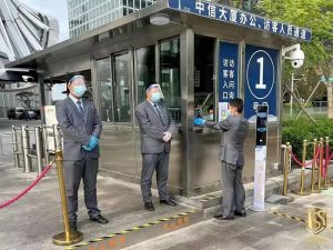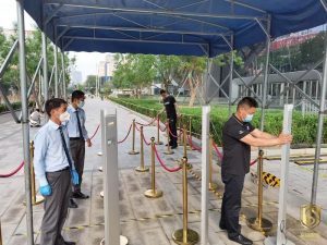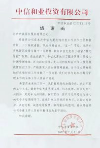 在全體隊(duì)員的執(zhí)著堅(jiān)守和不懈努力下,大廈辦公安全得到了保障,真正做到了人員零接觸、零感染。盡職盡責(zé)、主動(dòng)作為,京城安保隊(duì)伍贏得了中信大廈項(xiàng)目部領(lǐng)導(dǎo)的一致肯定和表?yè)P(yáng)。7月6日,中信集團(tuán)授予京城安保隊(duì)伍錦旗一面、表?yè)P(yáng)信一封,并為隊(duì)員們發(fā)放了慰問(wèn)品,京城安保集團(tuán)副總經(jīng)理王海濤參加了錦旗授予儀式。為了表彰工作優(yōu)異、貢獻(xiàn)突出的安保、安檢隊(duì)員,駐中信大廈項(xiàng)目在隊(duì)伍中評(píng)選出“防疫突出貢獻(xiàn)獎(jiǎng)”一名、“防疫先鋒”三名、“防疫標(biāo)兵”十二名,頒發(fā)了證書和獎(jiǎng)金。